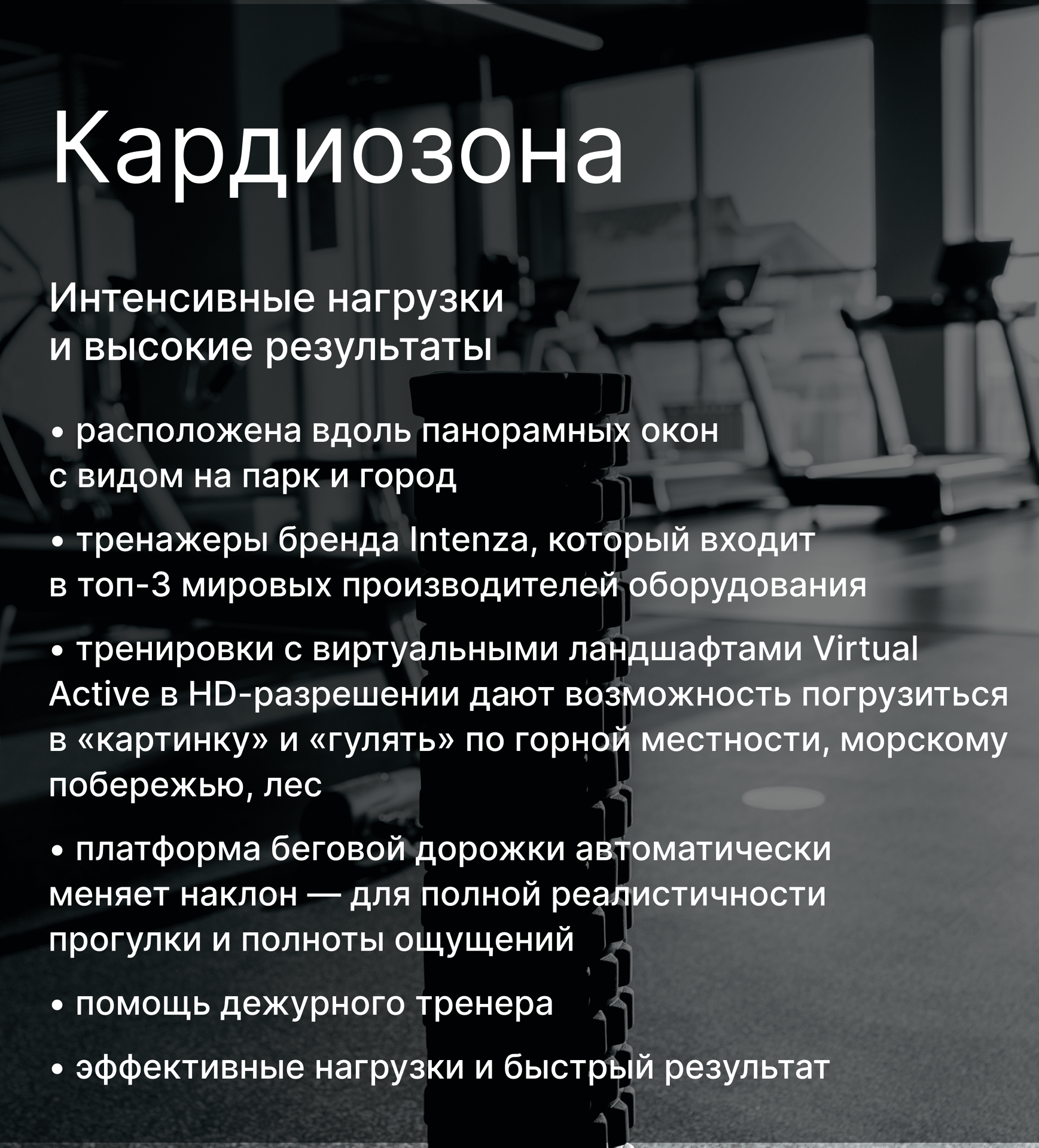 • тренажеры бренда Intenza, который входит в топ-3 мировых производителей оборудования