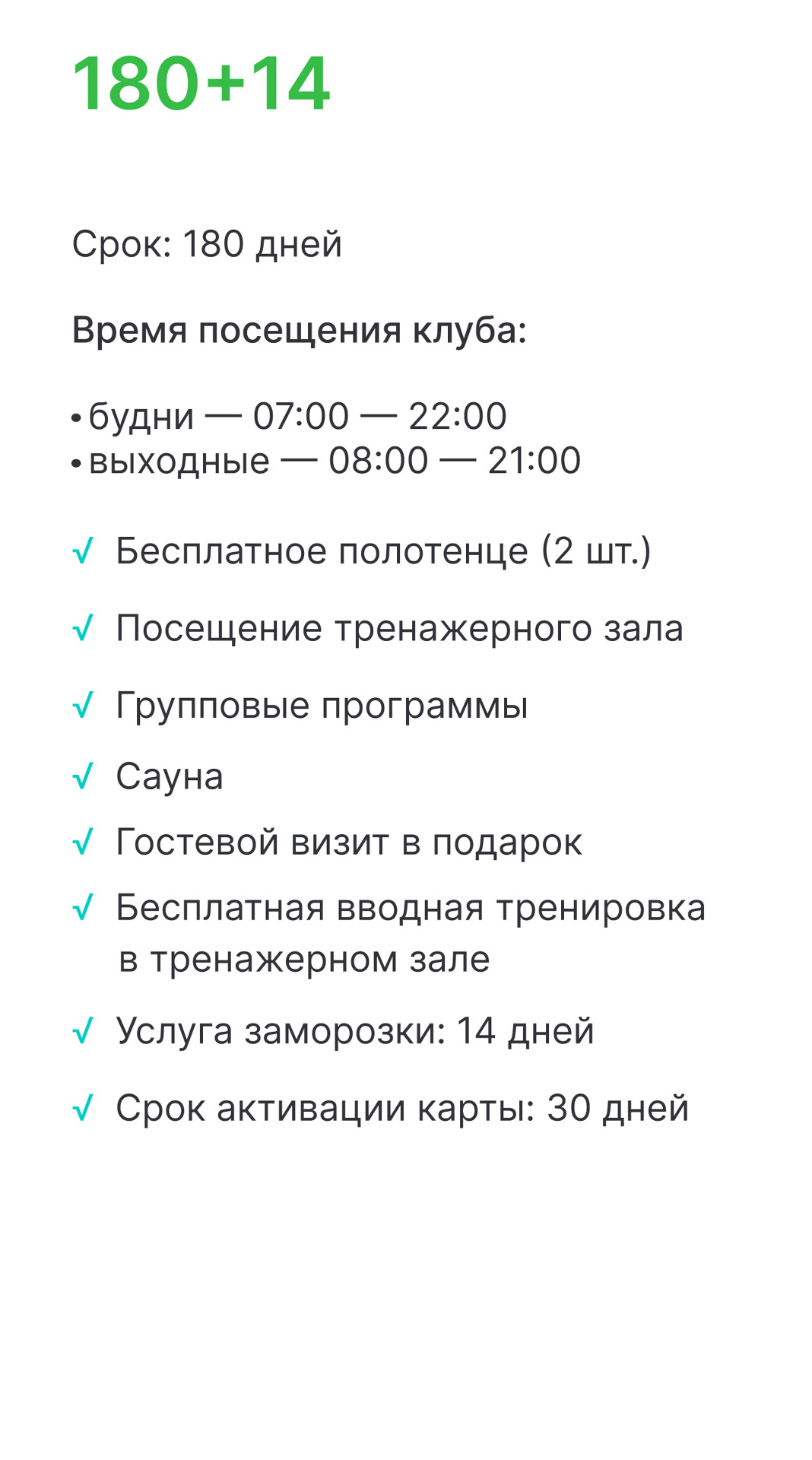 • 20 направлений групповых тренировок