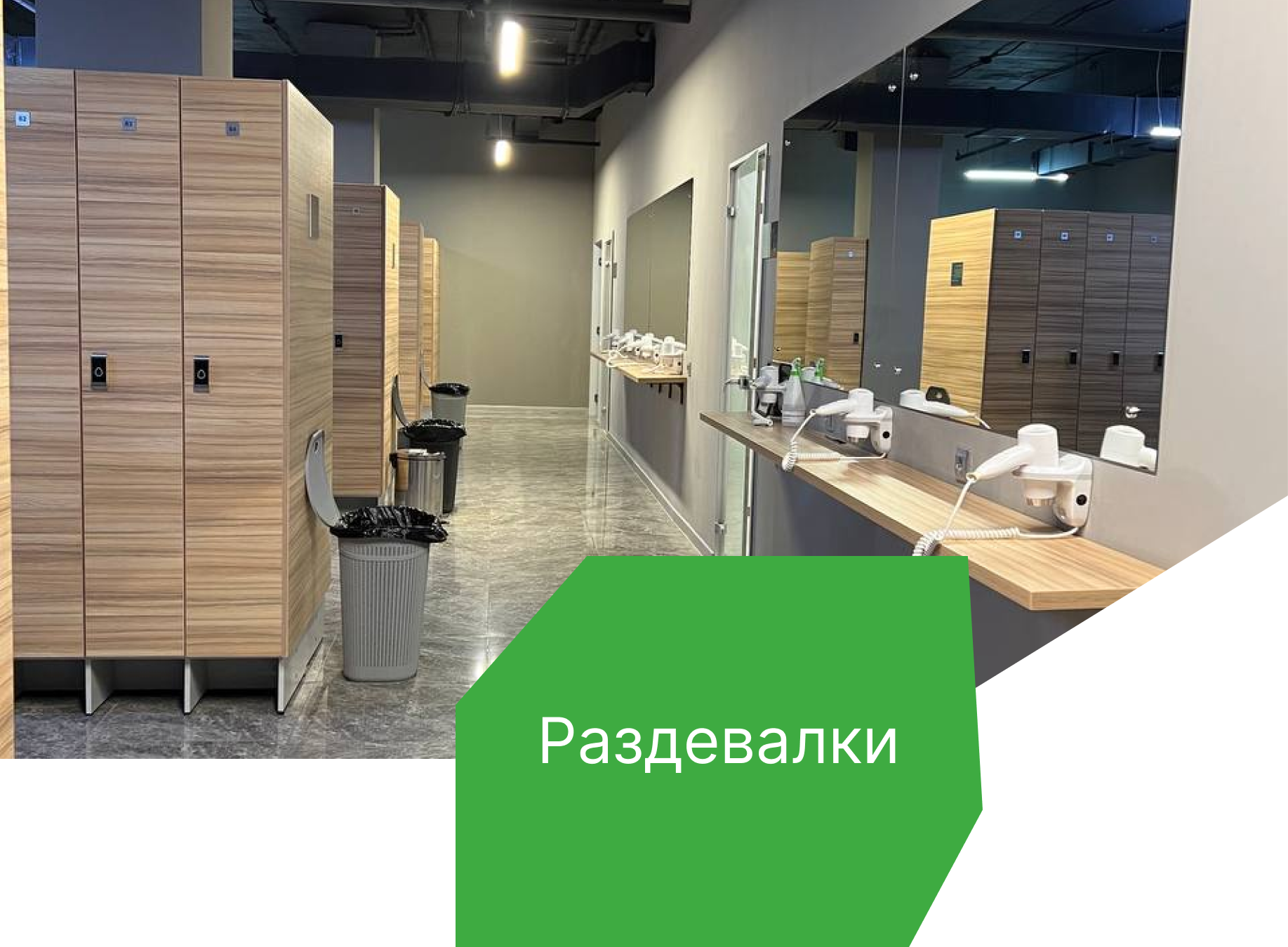 • просторные и комфортные раздевалки• шкафчики во весь рост — 162 шт. (ж/м)